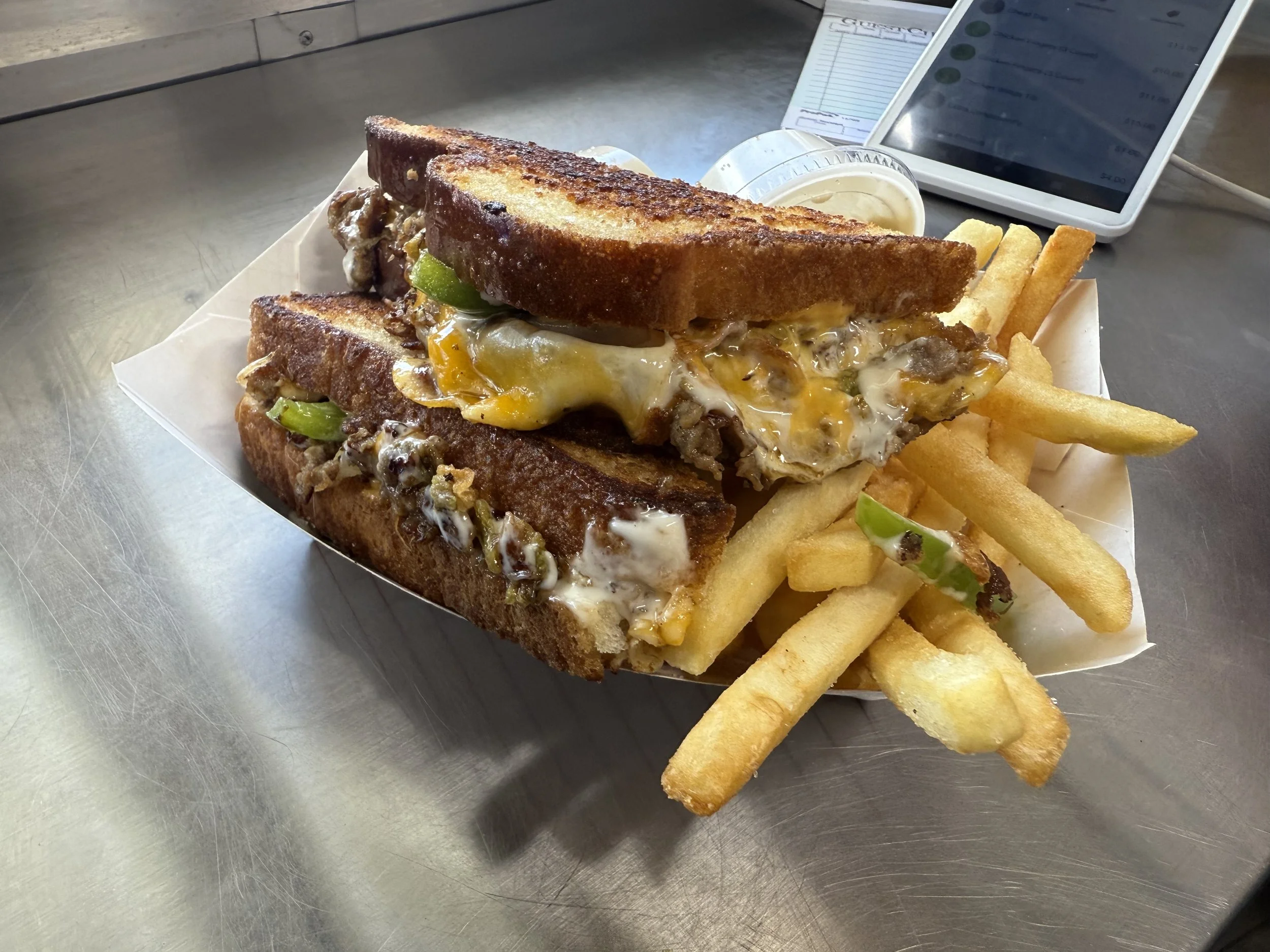 Our loaded Philly Cheesesteak, features tender steak, sautéed onions, and green peppers, topped with crispy jalapeño crisps for an extra kick. Melted mozzarella, sharp cheddar, and creamy yellow queso complete this flavorful, cheesy masterpiece!